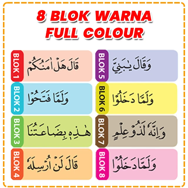 Pembagian blok warna untuk setiap bagian Al-Qur’an. Membantu memetakan hafalan secara visual.