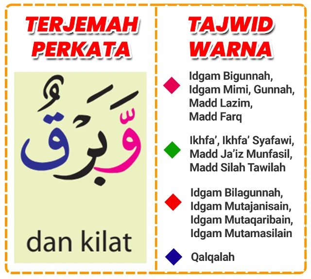 Setiap hukum tajwid ditandai dengan warna berbeda.