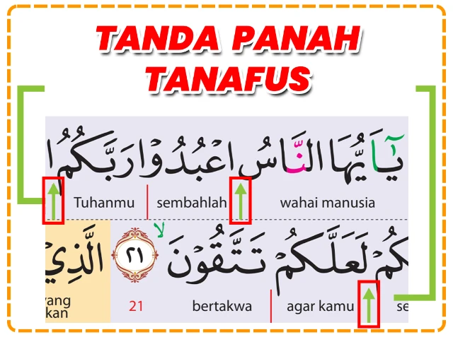 Tanda panah khusus sebagai petunjuk sekali nafas saat membaca.